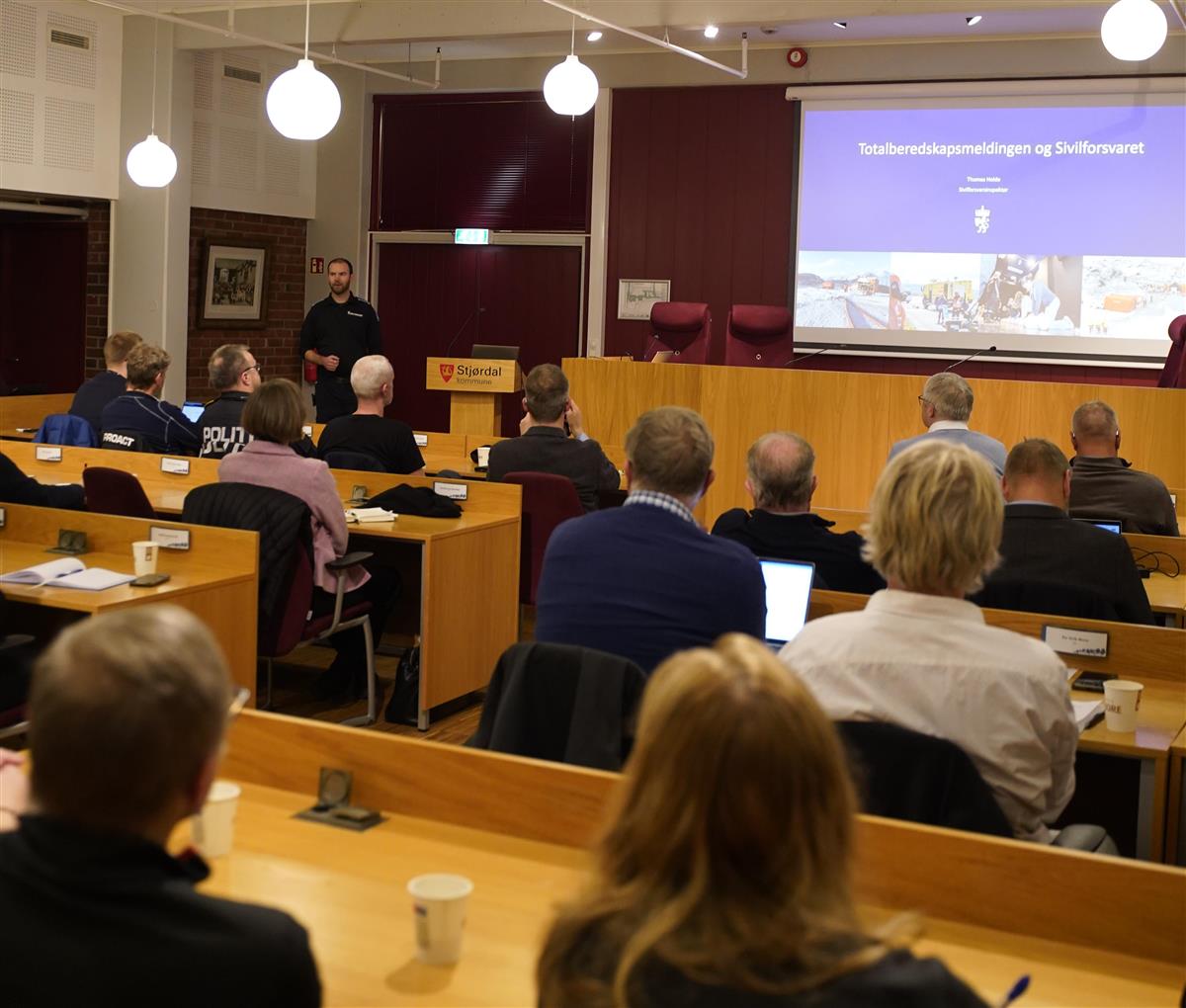 Fylkesberedskapssjef Dag Otto SkarOrdføreren ledet møte, mens Adrian Rygg fra Nord-Trøndelag sivilforsvarsdistrikt og fylkesberedskapssjef Dag Otto Skar holdt innlegg. Blant deltakerne var representanter fra forsvaret, sivilforsvaret, kommunen, frivillige, politi, næringslivet og nabokommuner.